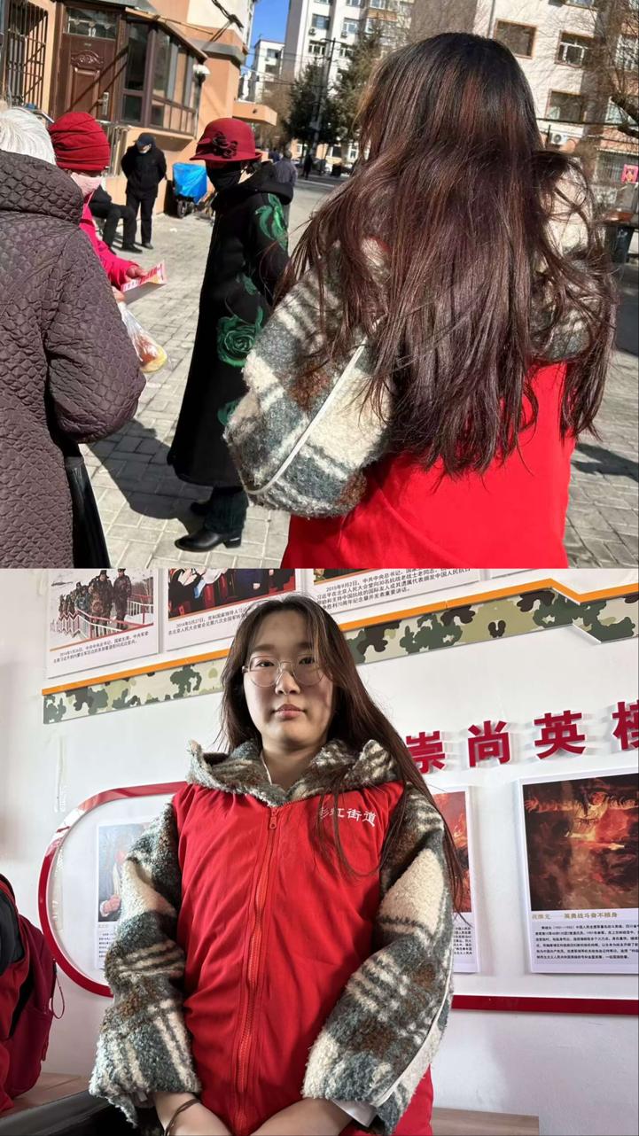 宋雨桐同学身着志愿马甲,在彩虹街道的社区广场上向过往居民发放健康宣传手册,用通俗易懂的语言讲解冬季常见病预防、日常保健等知识,耐心解答大家的健康疑问。随后,她走进社区英模展厅,参与社区志愿服务的筹备工作,协助整理资料、维护秩序,以饱满的热情助力社区活动顺利开展。