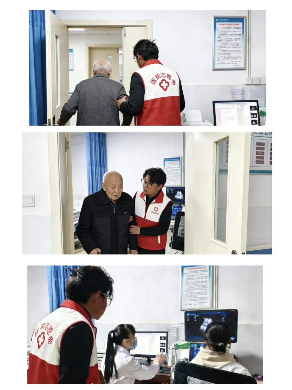 在志愿服务过程中,因为是在小乡镇医院,有许多老人不识字,就诊人数较多,我主要负责引导患者有序候诊、核对检查信息,耐心提醒患者做好检查前准备。同时,我严格遵守医疗规范,协助医护人员做好患者隐私保护工作,维护诊室秩序与就诊环境。面对行动不便、老年及体弱患者,我主动上前搀扶、协助躺卧与起身,用细致的服务缓解他们的紧张与不便。