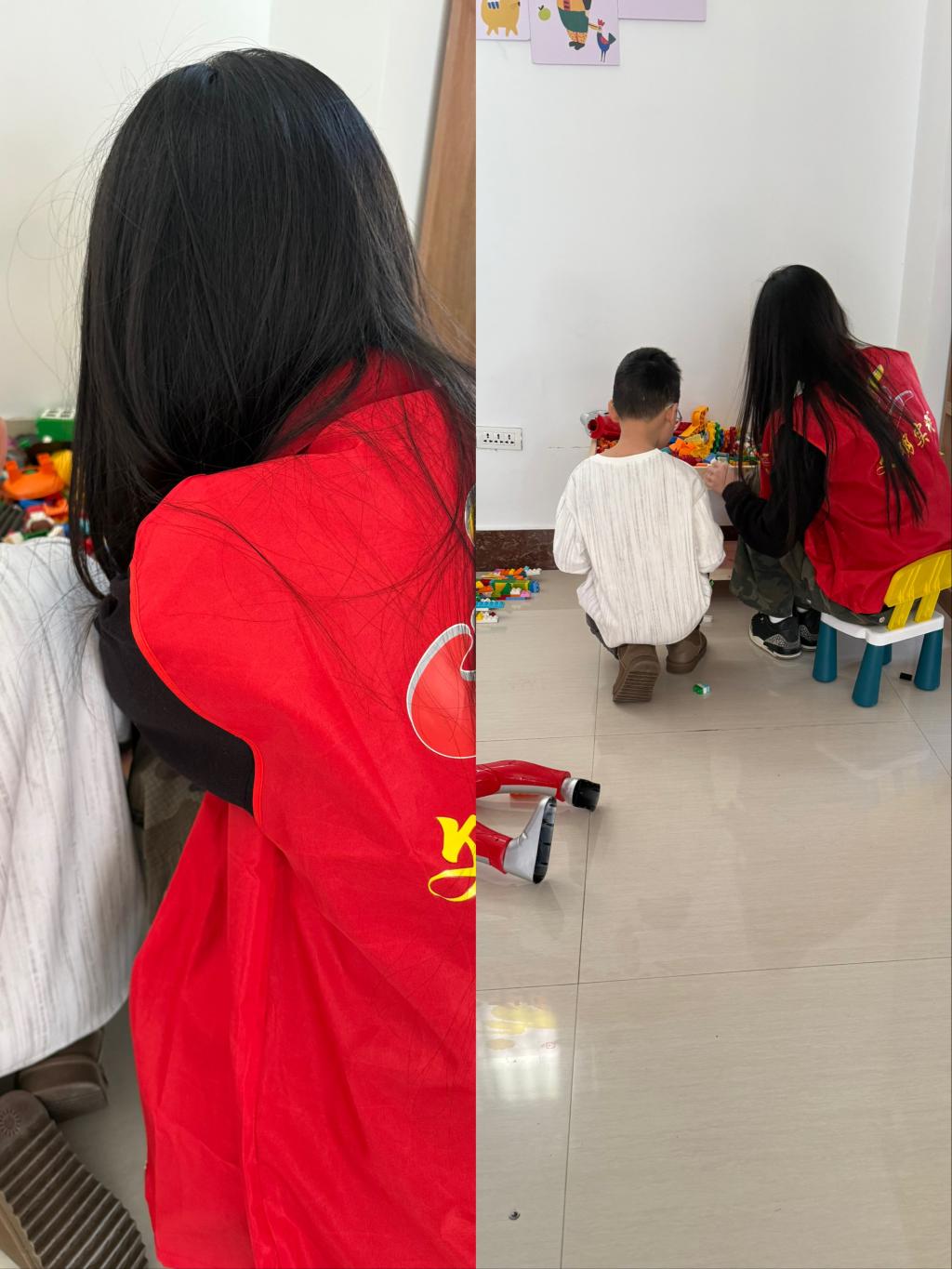 助产学251班吕思慧同学,在寒假期间,前往特殊儿童服务中心开展关爱志愿服务。她与孩子们一起搭积木、做游戏,耐心引导他们完成小任务,用温柔的陪伴守护特殊儿童的成长,用爱点亮童心。
