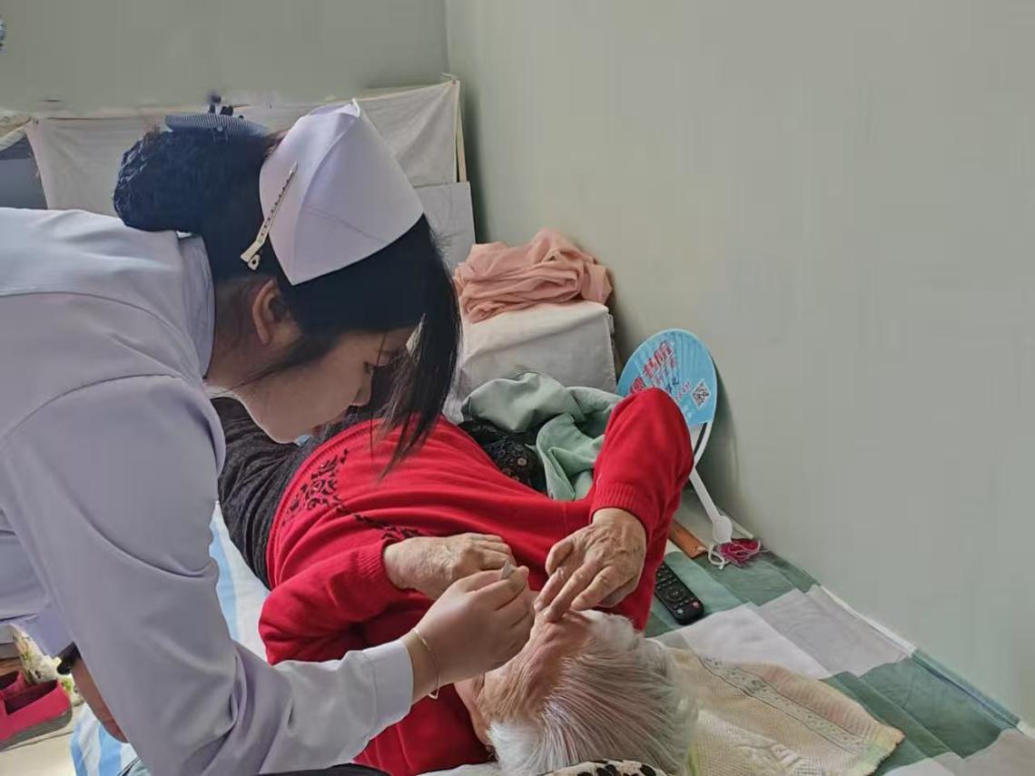 在社区上门照护的服务中,刘博为独居的高龄老人进行口腔护理。她轻柔地为老人擦拭口腔黏膜,观察口腔状态,并结合老年护理知识,耐心叮嘱家属日常清洁的要点。当老人用布满皱纹的手轻轻握住她的手时,她懂得了护理不仅是技术的传递,更是情感的陪伴。