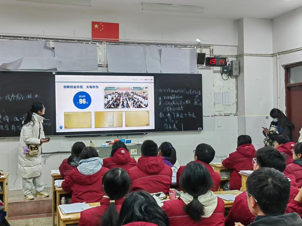 活动前期,团队分工筹备:黄未布置宣讲场地、整理宣传物料并对接学生名单;黄瑞琴驻守校门口接待引导、发放折页扩大知晓度;文鹏辉开展家访,一对一讲解报考要求、专业优势与就业情况;冷嘉昊统筹联络,确认活动相关安排。活动当天,校园宣传秩序井然,宣讲环节中文鹏辉结合学生学业规划,重点介绍学校护理特色专业、实训中心、三甲医院实习资源、高就业率及“老年护理”“急危重症护理”等微专业定向就业优势;冷嘉昊补充报考政策要点。互动答疑阶段,团队针对专业课程、专升本、实习分配、校企合作等问题逐一解答,获学生与班主任肯定。