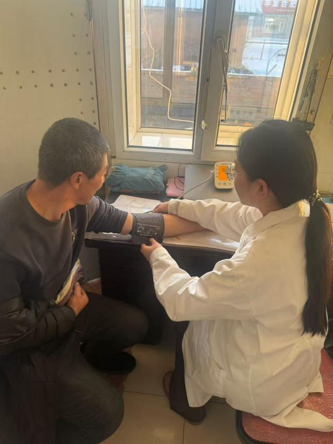 春节期间,农村地区外出务工人员集中返乡,中老年人群体的健康监测需求显著增加,同时也面临着健康知识匮乏、就医不便等现实问题。结合自身护理专业特长,石湘涵在当地社区便民服务点,为村民们提供血压测量、健康咨询、用药指导、慢性病随访等贴心服务,让专业医疗服务“零距离”走进乡村。
