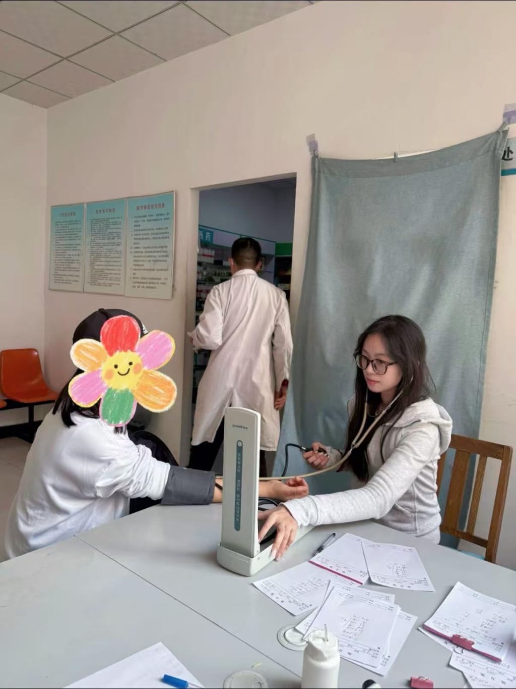 孙淼同学在宝坻区钰华街道社区医院开展志愿服务,重点为辖区居民提供贴心健康服务。她耐心为居民细致测量血压、血糖,认真记录数据,仔细询问身体状况与用药情况,针对慢性病患者,逐一宣教药物服用方法、剂量及注意事项,叮嘱按时服药、定期监测,用专业与耐心守护居民健康,让大家在家门口享受便捷健康指导,收获一致好评。