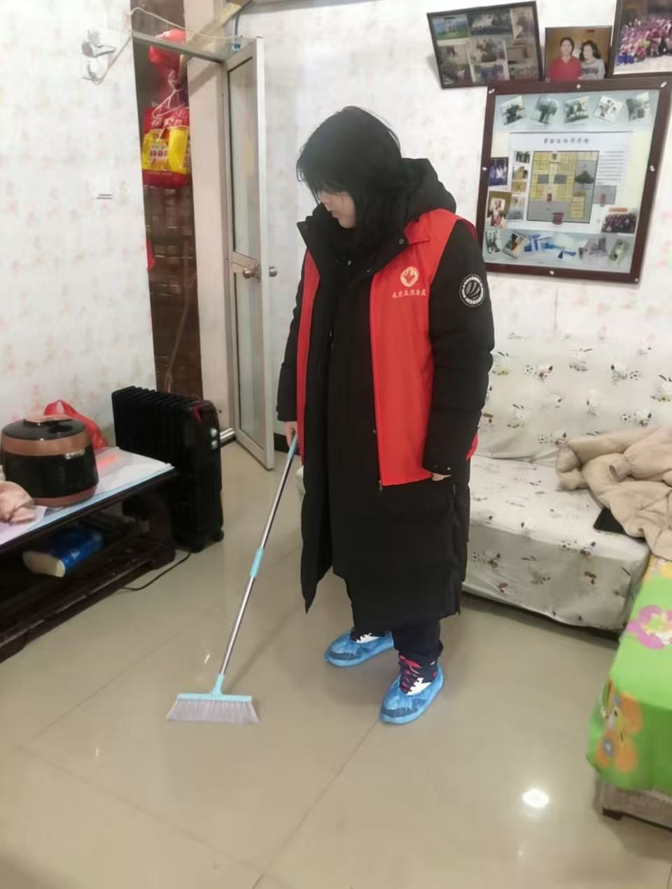 黄雯琪同学积极参与社区关爱老人志愿服务,来到社区老人家中,身穿志愿者红马甲认真打扫卫生、整理居家环境,细致擦拭家具、清扫地面,不放过任何一处卫生死角。她耐心陪伴老人聊天,贴心询问身体状况,用温暖的话语和细致的照料,让老人感受到关怀与温暖,以实际行动践行志愿精神,传承敬老爱老的传统美德,充分展现了当代大学生的爱心、奉献精神与责任担当。
