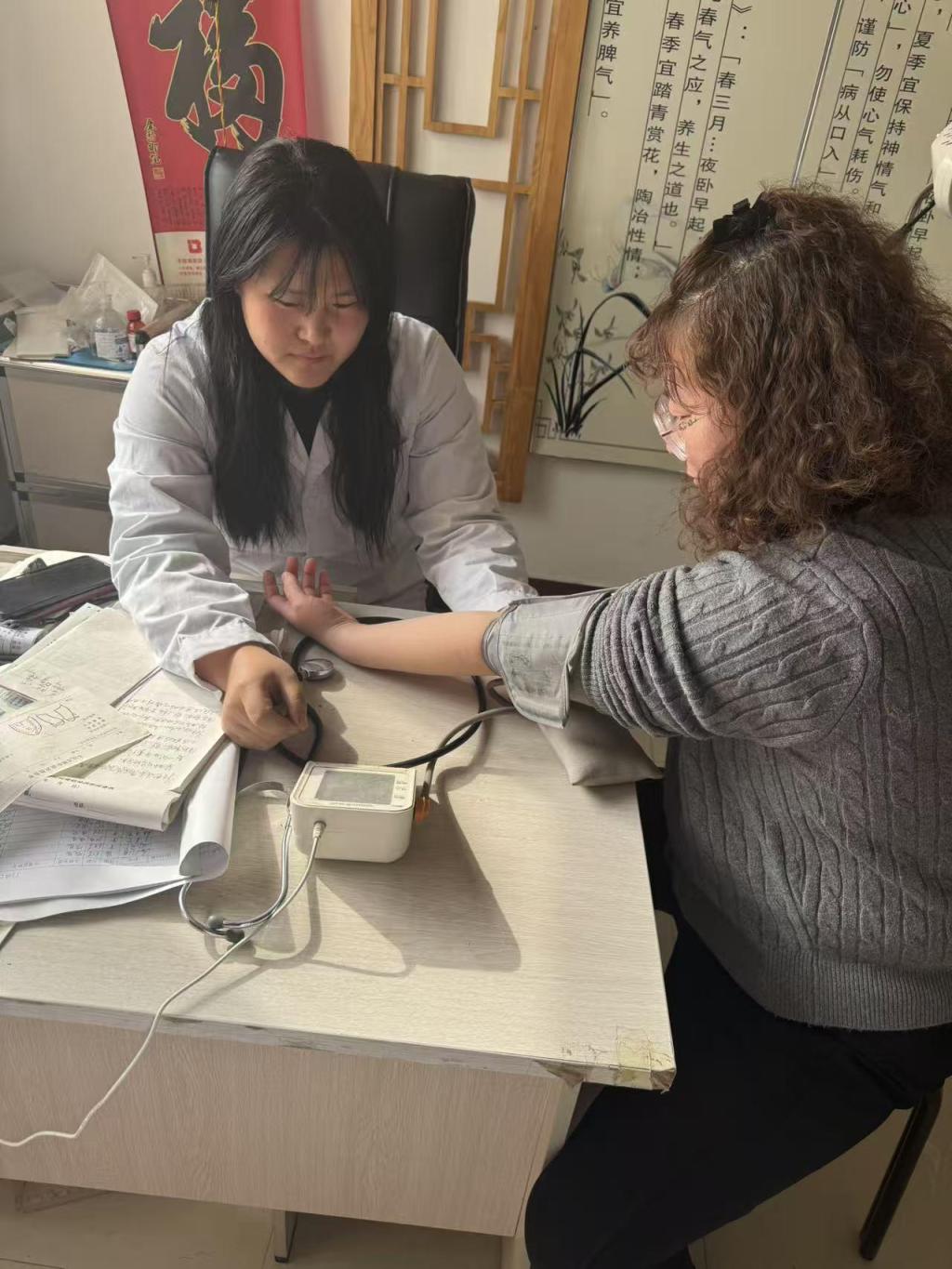 赵雪琳同学在村卫生院做志愿服务,重点为村民测量血压、血糖,登记健康信息,普及高血压、糖尿病等慢性病防治知识,并讲解合理用药、春季传染病预防、日常保健等实用知识,耐心为村民服务,为他们提供基础用药指导和生活关怀,叮嘱老人注意防寒保暖、规律作息。此次志愿服务让我在在实践中增长才干、锤炼品格。以点滴行动筑牢基层健康防线,为乡村振兴贡献志愿力量。