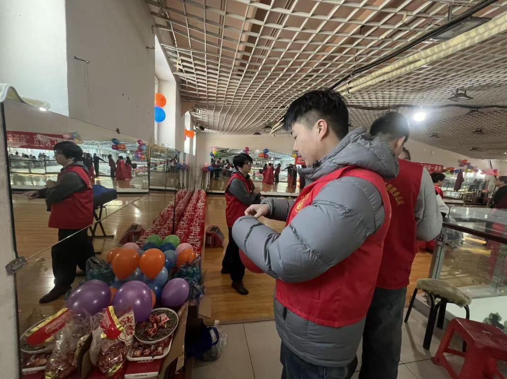 YXY-137组王博锐:在仁和社区晚会筹备与开展期间,积极投身志愿服务。提前到场协助布置现场,规整座椅、粘贴装饰,用彩球和红绸营造喜庆氛围;晚会开始后,负责物资分发、引导观众有序就座,及时响应现场临时需求。活动结束后,主动参与场地清理,分类收纳物资,确保现场整洁有序,圆满完成各项志愿任务。