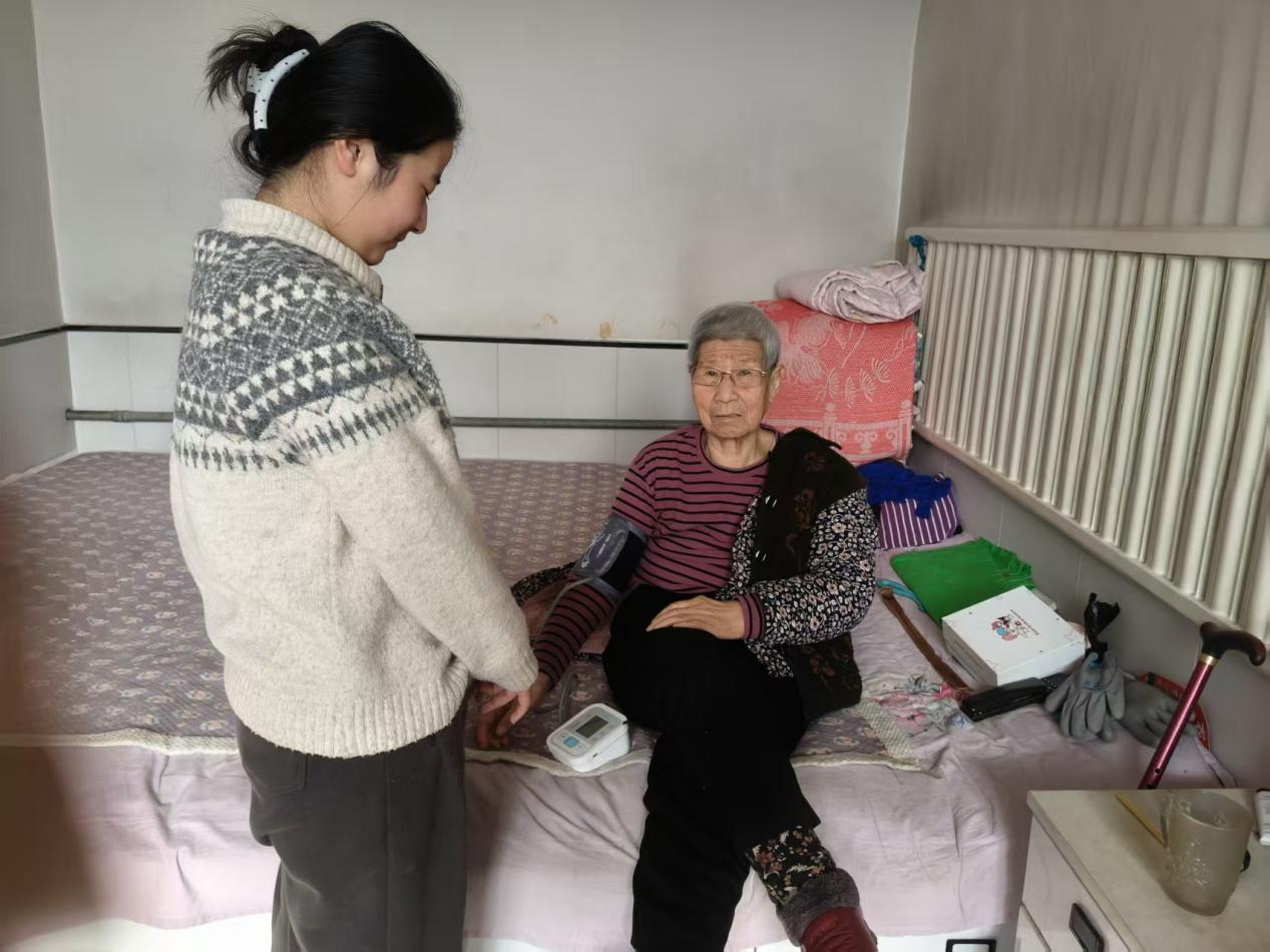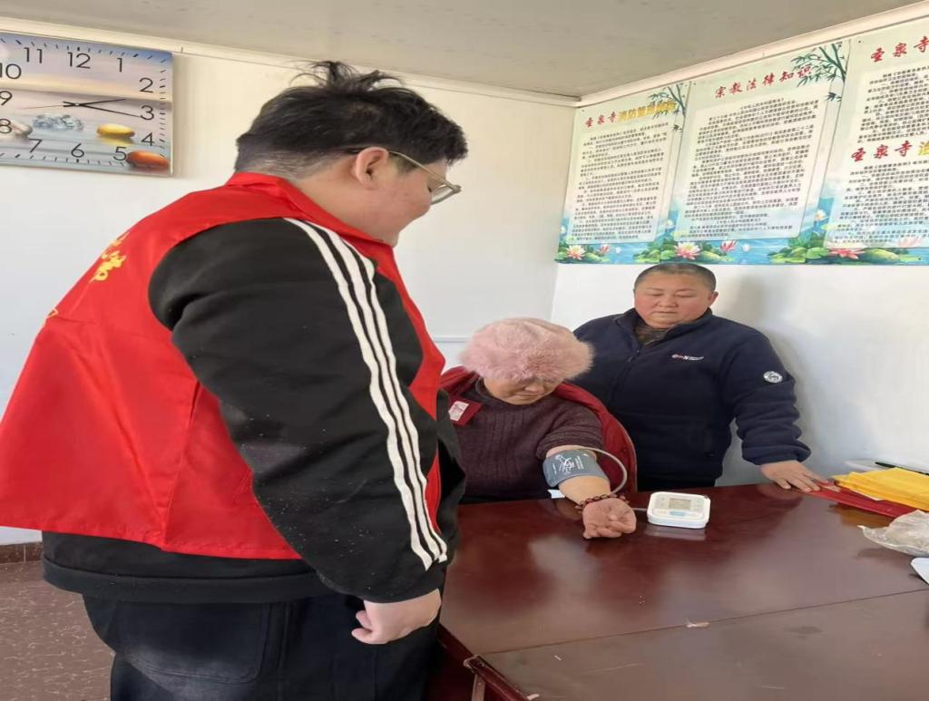 在乡村志愿服务中,魏如意同学细心为老人们测量血压,耐心询问身体状况,认真记录每一组数据。针对老人出现的头晕、肢体酸痛等情况,她运用所学护理知识,为老人进行轻柔的肢体按摩,缓解身体不适,用温柔与专业让老人们感受到真切的关怀。