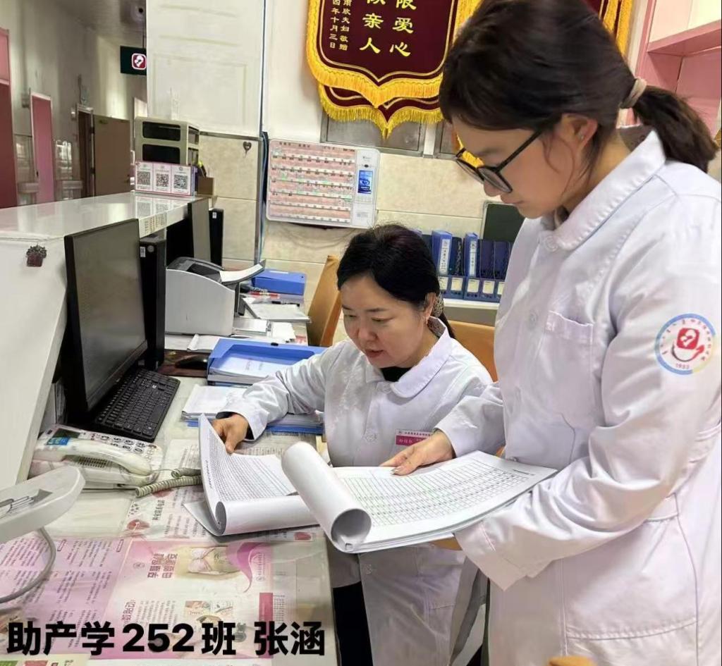 张涵:在志愿活动中,我的主要任务是协助医护人员开展门诊引导、孕期健康宣教资料整理,以及产后康复区的环境维护工作。整理孕期健康宣教手册时,我系统学习了孕期营养、胎动监测等专业知识,并在医护人员的指导下,向等候的孕产妇进行简单讲解。我愈发深刻地体会到此次志愿活动的价值,它让我跳出课堂的理论框架,真正走进基层妇幼健康服务的一线。我不仅亲眼见证了医护人员守护母婴健康的责任与担当,更在实践中明白“助产”二字不仅是专业技术,更是一份传递温暖的职业。