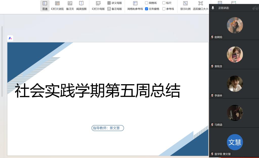 为进一步推进专业实践学期学习,及时帮助学生进行总结,2月13日下午20点,医学院在腾讯会议召开了专业实践学期第五周总结会议,会议由孙玉翡老师主持,全体参与专业实践的学生参加。