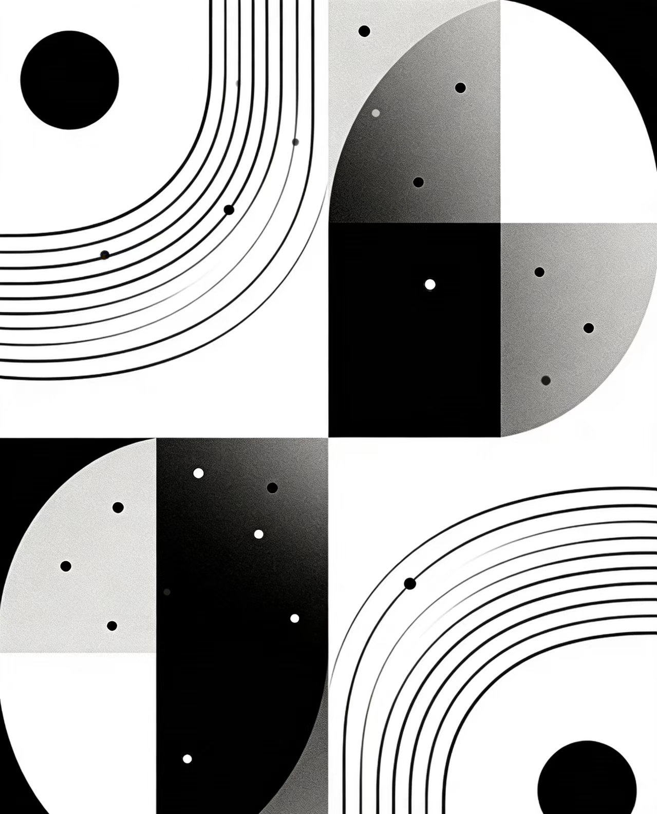 我选用点、线、面作为核心设计元素。通过圆点的疏密、线条的走向、面块的对比,构建简洁、现代、富有秩序感的视觉符号,体现简约理性的设计美感。