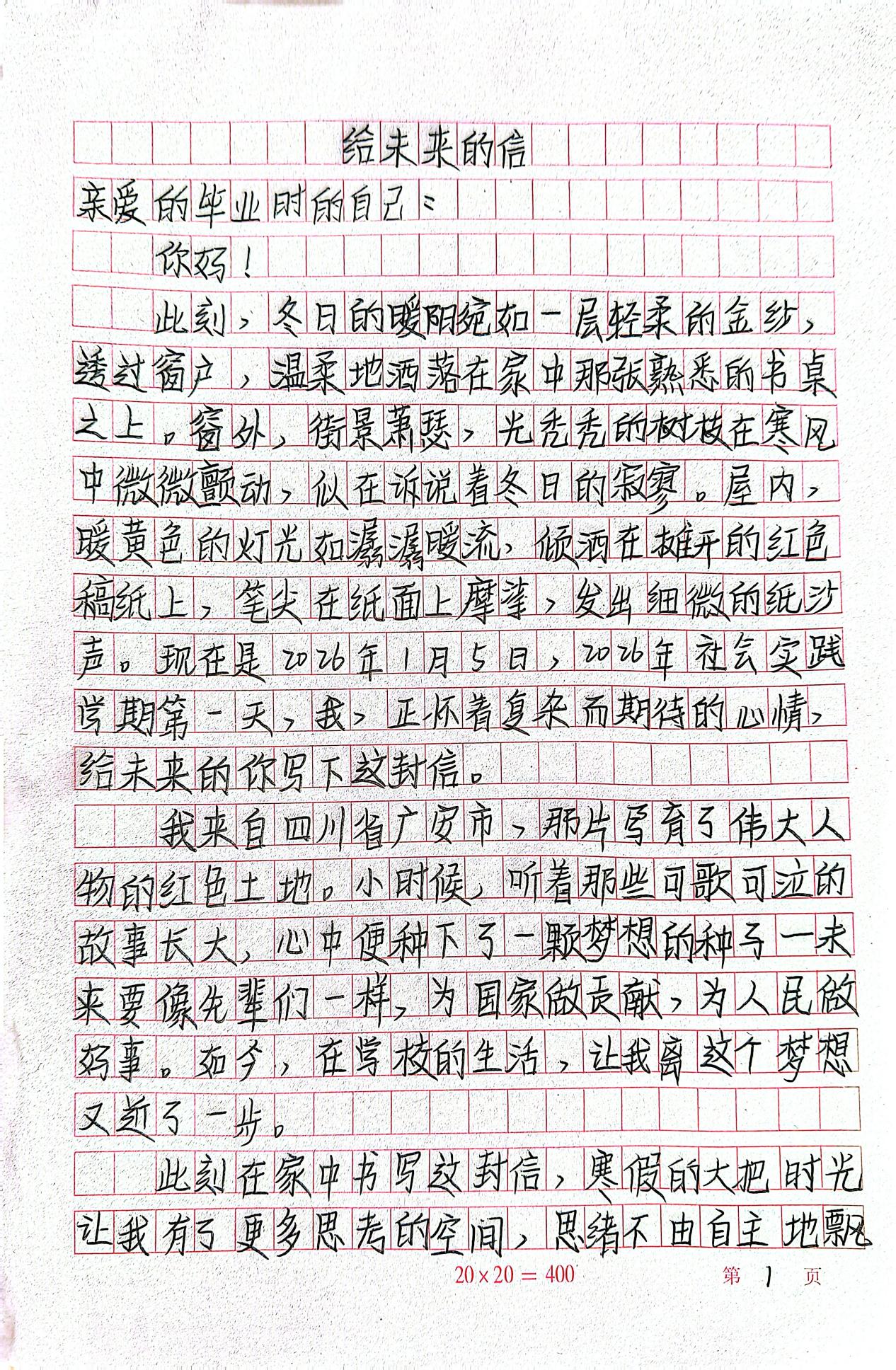 社会实践学期里,于子涵、黎嘉娴、郭星池三位同学,以“给未来的信”为载体,执笔写下心中期许,将校训“中而至庸,和而不同”融入成长规划,在字里行间勾勒出属于自己的青春航向,让青春理想在笃行中落地生根。