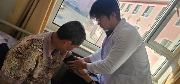 在医院的诊疗区,护理学专业护理学234班贾博慧同学身着白衣,细致地为转运床更换床单,整理医疗设备。他动作规范、一丝不苟,用严谨的态度协助医护人员做好诊疗前的准备工作,为患者营造干净、舒适的就医环境,用专业素养践行着医学生的初心与使命。青春扎根社区,服务传递温暖。