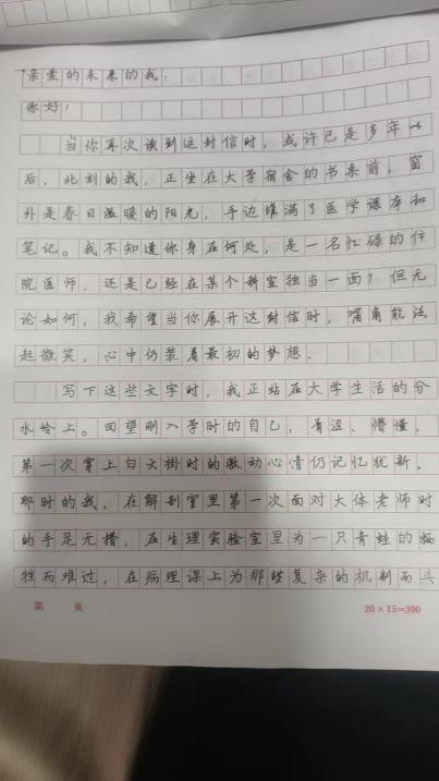 我校学生赵新宇踊跃参与 “给未来的自己” 主题活动,伏案执笔写下一封情真意切的书信,与未来的自己展开温暖而坚定的对话。在信里,他细数校园时光中的成长足迹,沉淀实践学习中的收获与思考,坚定表达了深耕专业、笃学不怠的决心,更深情展望了投身中医药事业、传承千年智慧、践行医者使命的远大理想。