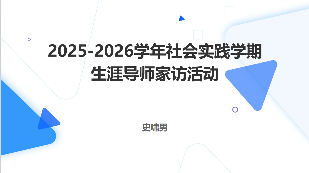 本次家访史啸男结合所带学生的实际情况,精心筛选了家访对象,重点关注职业定位模糊、学业有提升空间及需个性化指导的学生。家访前,逐一梳理每位学生的日常学习表现、兴趣特长、职业倾向,结合前期沟通了解到的困惑,制定了专属访谈提纲,提前与学生和家长约定沟通时间,确保每一次交流都有针对性、有实效性。