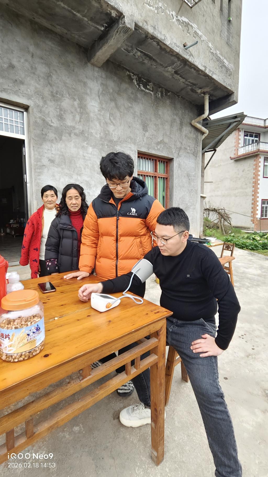 活动现场,肖梓轩结合老年群体健康需求,用亲切易懂的方式为老人们讲解高血压防治、合理膳食、日常养生等健康知识。随后,他认真为每一位老人测量血压,仔细记录数据,耐心询问老人的身体状况与用药习惯。在服务过程中,他细致叮嘱老人注意保暖、规律作息、清淡饮食,对血压异常的老人及时给予科学建议与温馨提醒。