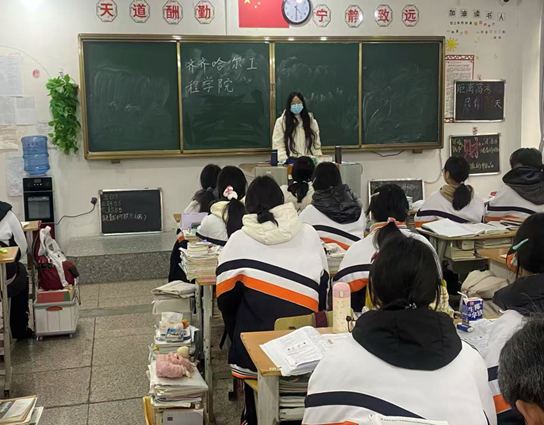 杨志艳回到母校,为正在备战高考的学弟学妹们分享大学生活与学习经验。站在熟悉的讲台前,黑板上“齐齐哈尔工程学院”的字样格外醒目,这正是她如今求学的地方。从“高考倒计时”的紧张到大学校园的广阔,她用亲身经历告诉学弟学妹:“每一份努力都不会被辜负。”她为这个特殊的备考季注入了一份温暖的鼓励。她的分享不仅传递了宝贵经验,更用行动诠释了“天道酬勤”的真谛——今日的奋斗,终将点亮明日的道路。
