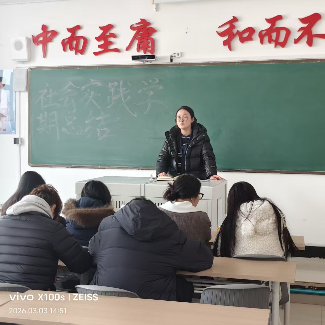 为扎实总结社会实践学期工作成效,凝练实践育人经验,切实将实践成果转化为专业成长动力,于鑫雨老师在2026年3月3日在一教1304召开了社会实践学期总结大会,会议由护理学(专升本三年制)252班全体同学参加。