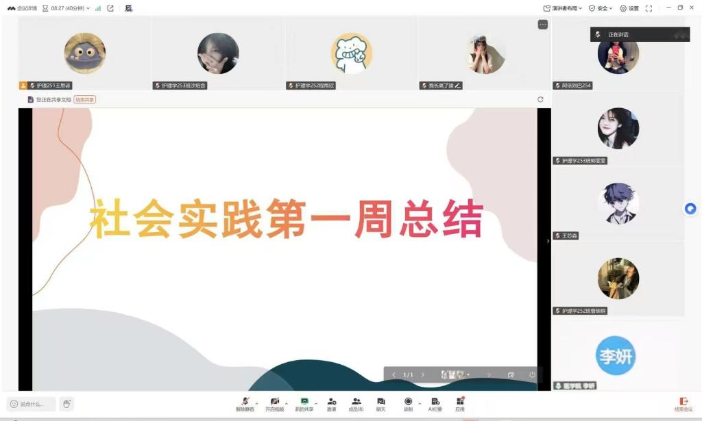 为扎实推进社会实践走深走实,及时总结经验、破解难题,于2026年1月10日,由辅导员李妍组织召开“社会实践第一周总结”主题视频会议。本次会议以“成果汇报+问题交流+指导嘱托”为核心,让队员们在复盘中共成长,在嘱托中明方向,为后续实践活动高效开展注入动力。