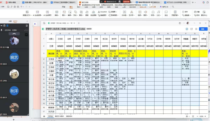 此外,会议同步梳理了本周实习任务与考核安排,明确了病例分析、操作演练等学习重点,并通过案例讲解,引导同学们建立临床思维,规范护理文书书写。老师特别叮嘱同学们要做好自我防护与心理调适,遇到问题及时与带教老师及班级沟通,确保实习过程安全、高效、有序。