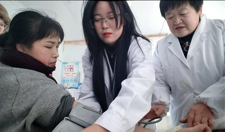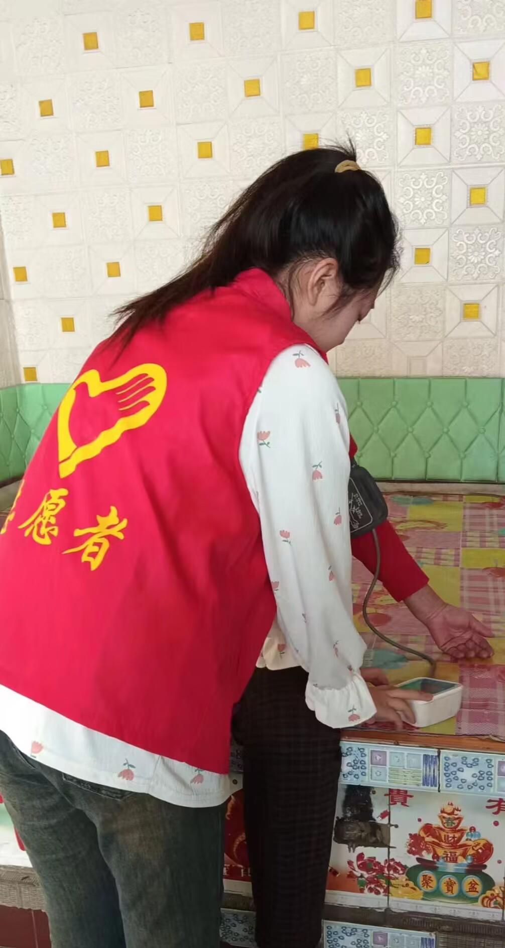 郭兰香去村里卫生所帮忙,参加了志愿服务,帮助村里的留守老师进行健康体检、测量血压等活动,关爱村里的老年人。