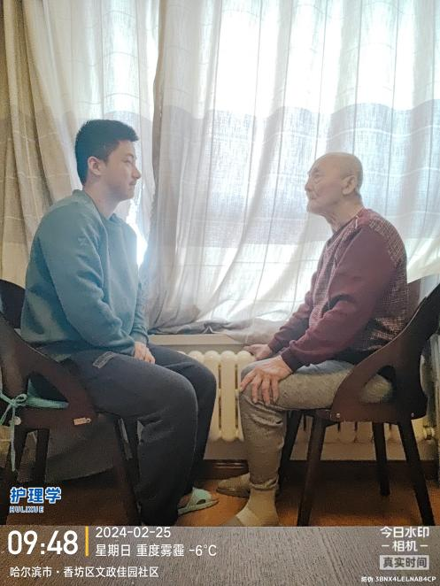 随着社会人口老龄化加剧,老年人成为了重点关注对象。为了给予老年人关怀,2月25日,周泽林于哈尔滨市香坊区文政佳园社区开展了关怀老人志愿服务,共一人参加。