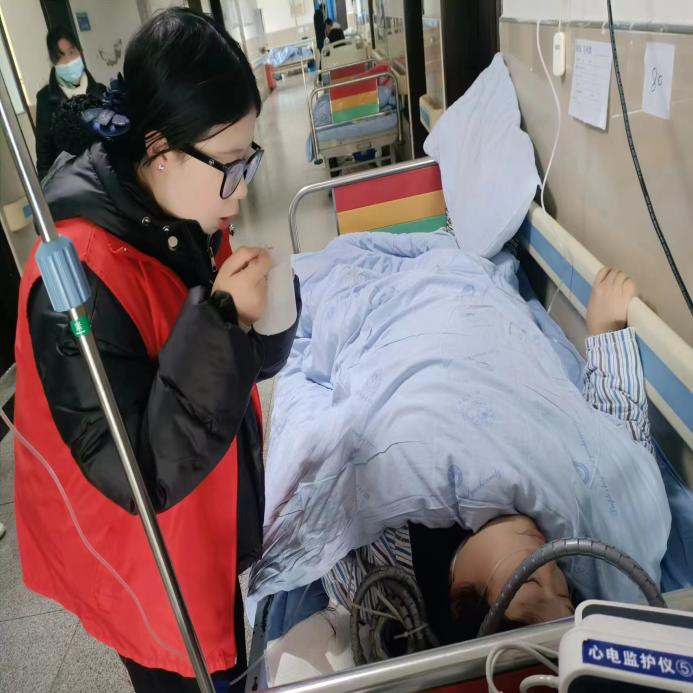 2月23日,我在第二次志愿服务过程中,我在进行关爱病人服务活动,一位患者在术后需沾水润喉,但其家人仅一人,需办理住院手续,医院临时派我进行临床关爱,在无人照看时照顾病人,用小勺沾水喂病人以润喉。此次志愿活动,我既帮助到了行动不便的病人,又学习到了术后照顾病人的知识。