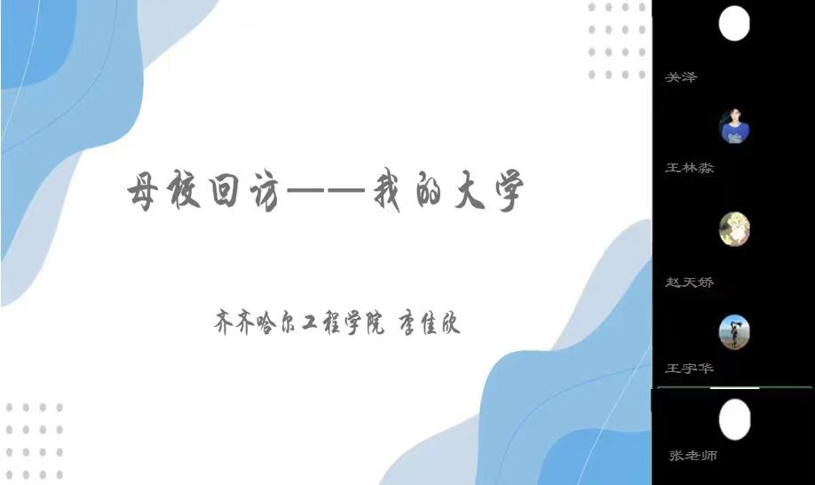 护理学235班李佳欣同学在线上与海伦市第一中学的老师以及学弟们进行交流,发现学校的变化,分享自己在校园的回忆。不仅如此,在与学弟的交流中,分享了自己的学习经验,鼓励学弟学妹们珍惜时光,努力学习,为自己的未来打下坚实的基础。同时也积极回答了学弟们问题,给予了耐心解答和指导。在与老师们的交谈中,和老师聊起高中的趣事,也把大学的生活分享给老师,一起探讨对未来的规划。这次的母校回访,让我们明确了未来的方向。