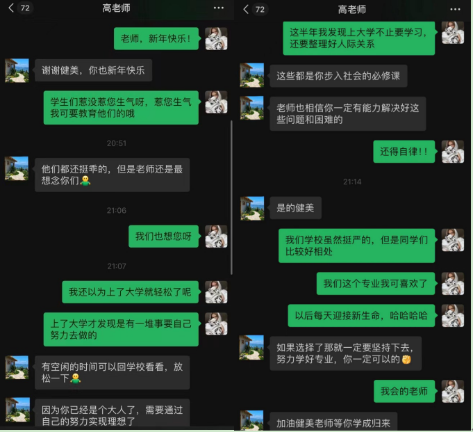 为弘扬中华民族尊师重道的传统,号召我校学生积极践行社会主义核心价值观,将感恩之心转化为感恩之行,我校在社会实践学期开展母校回访活动,助产学231班杨健美同学与高中母校老师进行交流。