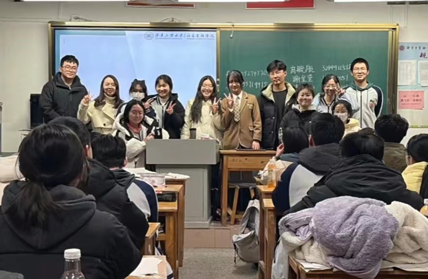 首先我们等到他们自习课时,我们为学弟学妹们讲了很多,我们希望他们可以对自己的未来有一个清晰的认知,走出迷茫,并激发大家的学习热情,从根本上解决学弟学妹的学习困难,共同为他们的中考打上坚实的基础,为实现自己的梦想而奋斗。我们通过分享自己的心得和经验教训,让大家做出正确的选择少走弯路。