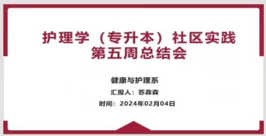 2024年2月4日晚七点,指导老师苏森森通过腾讯会议形式对我们召开了社区护理实践第五周线上总结会,全体学生参加此次会议。