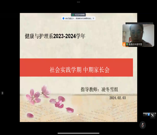 2024年2月3日20时,指导教师凌冬雪老师召开2023-2024学年社会实践学期“云上家长会”,19位学生及部分家长参会。