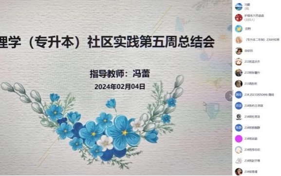 为强调社区护理实践报道撰写、指导护理实践学习,冯蕾老师召开了社区护理实践第五周总结会,以腾讯会议的形式进行线上会议。