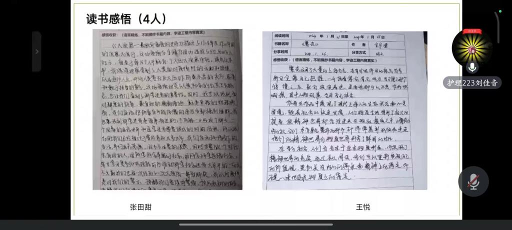 其次,由老师对本周的任务完成情况的总结,第四周接近过年,同学们的作业内容更加丰富,曹慧老师也对我们进行春节前的祝福和嘱咐。