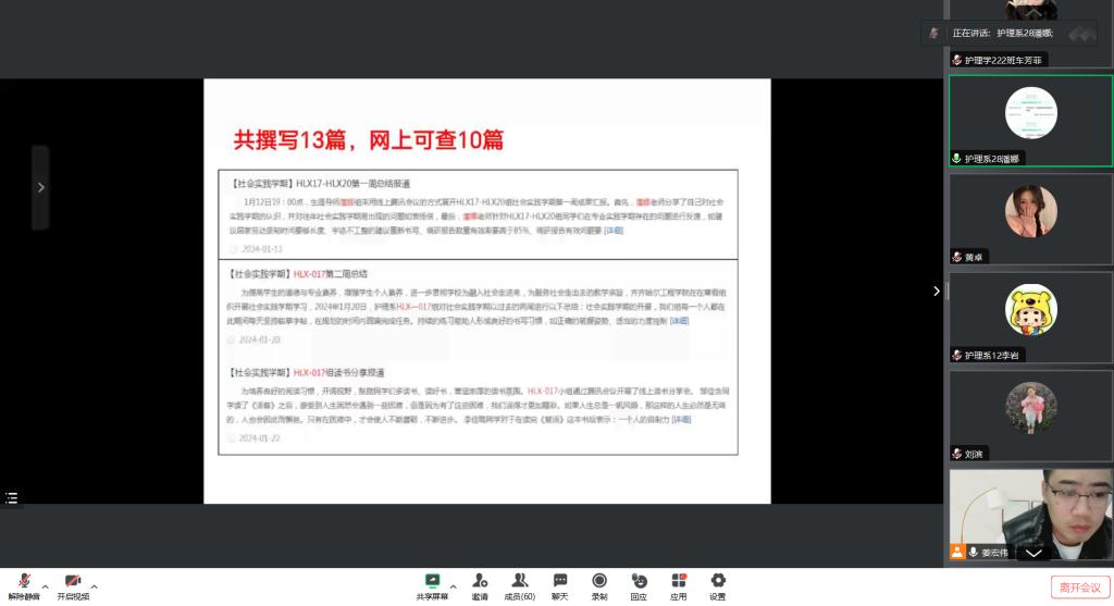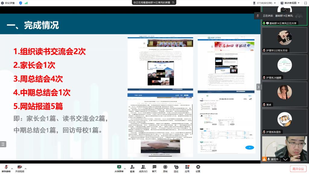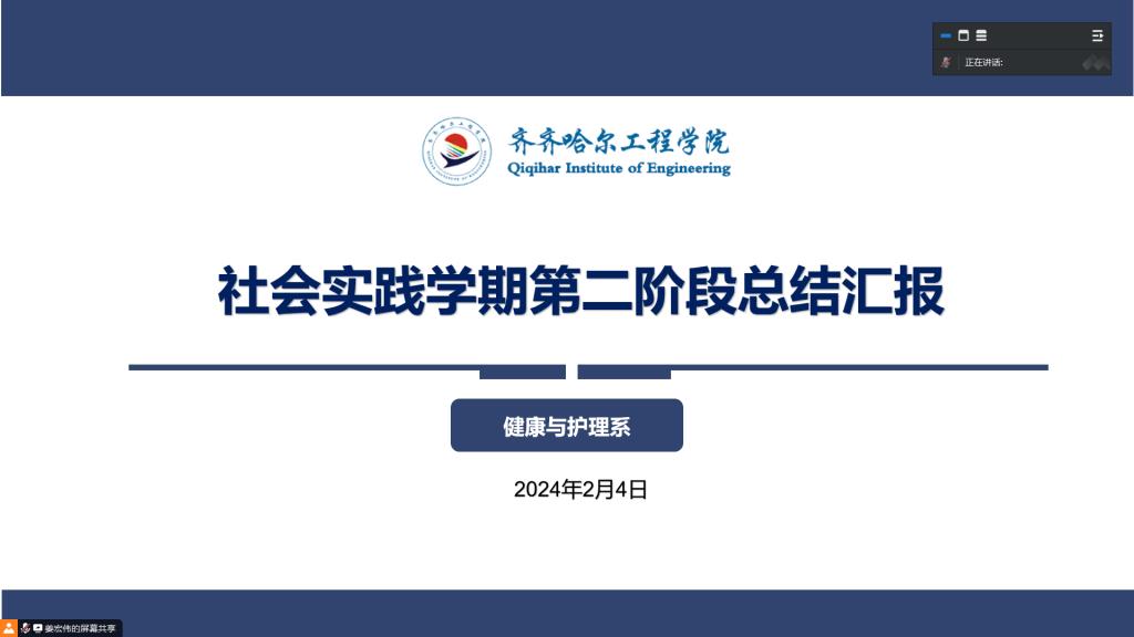 为全面总结近四周的工作,更好地完成社会实践学期。2024年2月4日18时,健康与护理系组织召开社会实践学期指导教师第二阶段总结汇报。本次会议由健康与护理系党总支副书记姜宏伟主持,健康与护理系全体指导教师参会。