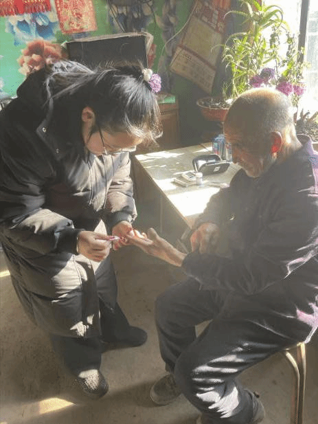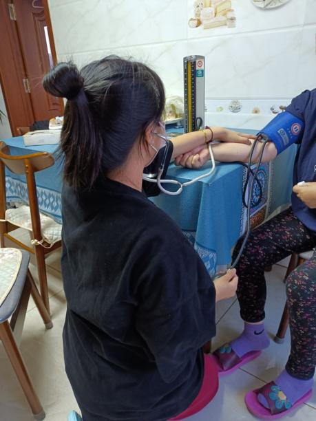 邹佳含同学为松北区万宝镇化家村后太平屯老人测量血压并与其聊天谈心,用实际行动关爱老人的身体健康,让老人感受到来自社区的关注与关心。每位居民到来,都详细询问他们的饮食情况、近期身体情况、病情、进行血压测量。针对目前高血压患者普遍增多的情况,提醒老人们要随时关注自己的血压,为自己的身体健康提供保障。