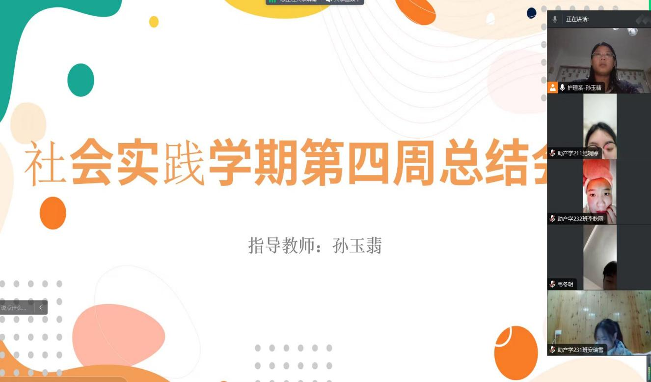本周是社会实践学期的第四周,在2月3日20点孙玉翡老师召开了社会实践学期第四周的总结会,分析了本周的任务完成情况,解决了同学们的一些问题,并强调了下一周的学习计划和需要改进的内容。