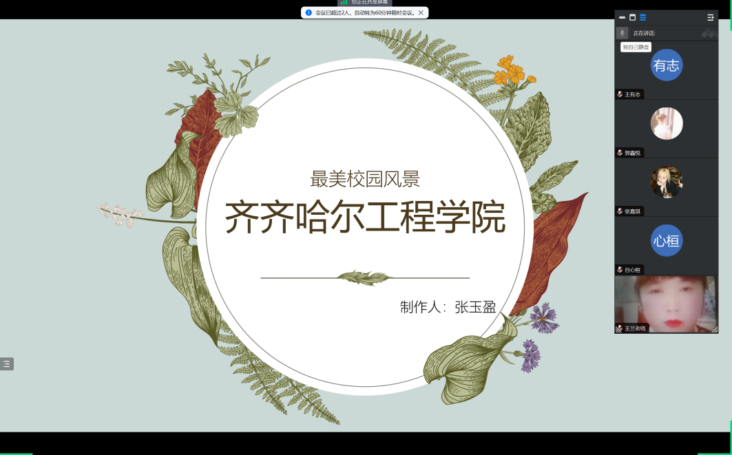 线上回访开始,张玉盈为高一十班的学弟学妹们介绍了齐齐哈尔工程学院并介绍了助产学这个专业以及助产学专业未来的就业方向。同时张玉盈与同学们分享高中时的学习方法和经验,最后张玉盈祝同学们有个充实的高中生活。