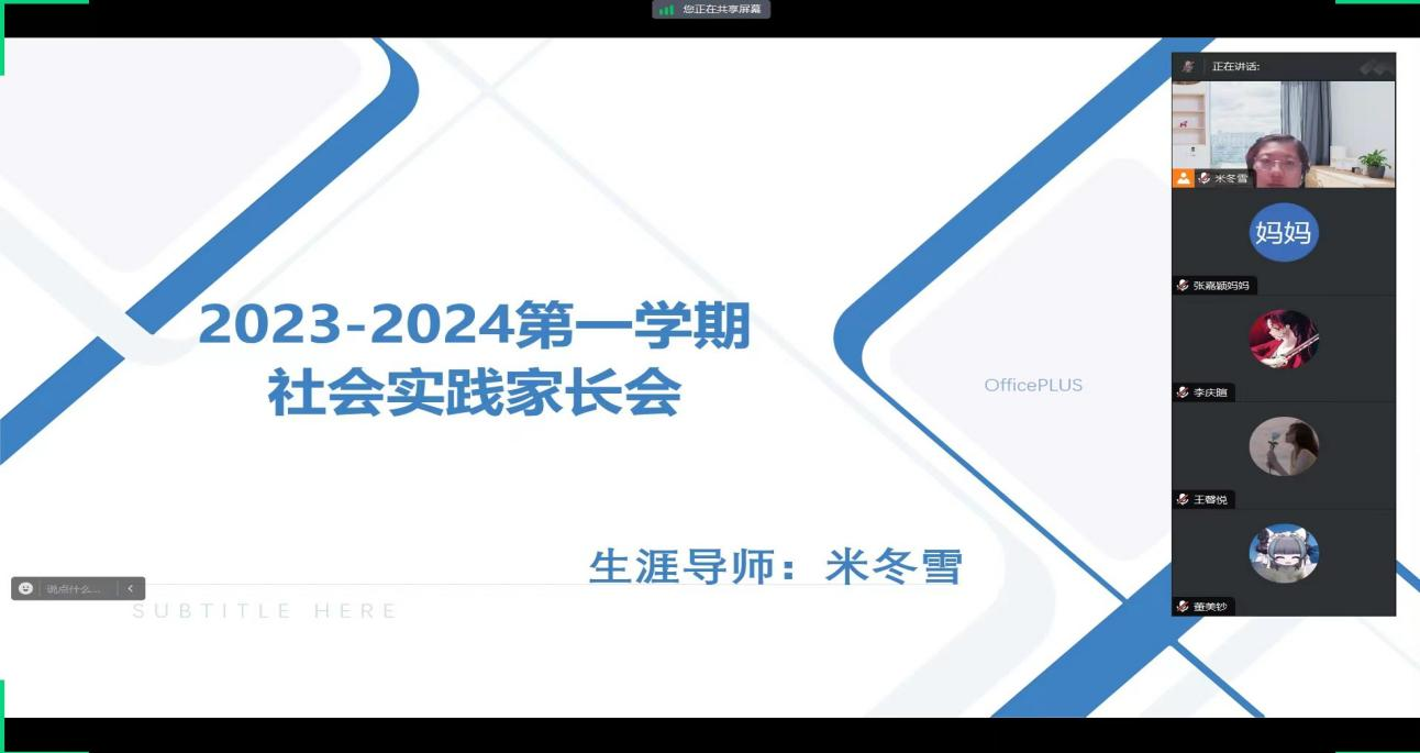 在2月3日米冬雪老师召开了家长会,会议刚开始米冬雪老师对各位家长能在百忙之中抽出时间参加本次家长会表示感谢,本次会议旨在向家长们介绍2023-2024学年社会实践学期的意义、重要性、学习项目完成情况,以及对前四周的总结,最后布置年后两周的作业。