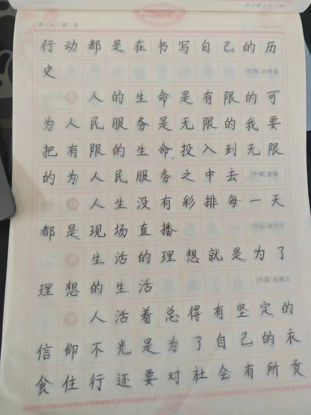 在字帖临摹上,我们的字体越来越工整美观。在选修内容上,通过学习强国的软件应用,这不仅让我们充分的了解我国的国情和任务,并且增强我们的爱国意识。通过音乐美术鉴赏的实施,陶冶了同学们的情操,使我们同学的精神境界不断提升。接下来我们小组还会继续完成社会实践任务,团结合作相互配合。