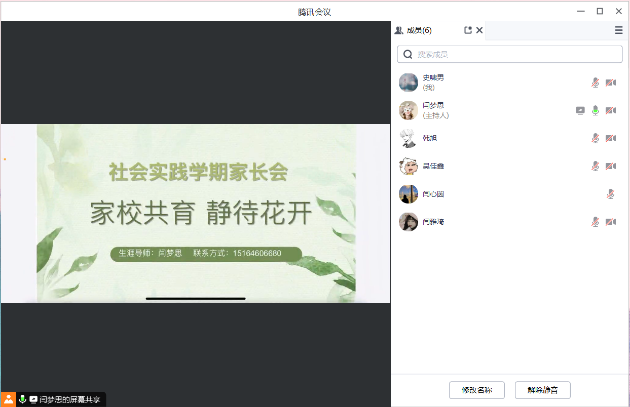 于2024年1月30日晚,由社会实践学期指导教师闫梦思召开线上家长会。指导教师闫梦思向参会的家长们表达致谢,然后从三方面讲解本次家长会的主要内容。