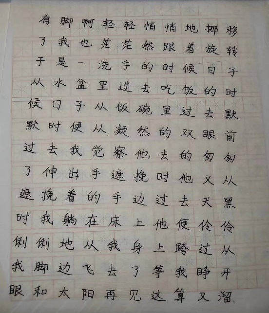为了促进学生的汉字书写能力,学校在社会实践学期中开展了字帖临摹的活动,通过字帖临摹对学生的汉字书写能力进行增强,临摹字帖不仅让学生的汉字书写更加美观,而且还可以陶冶情操,提高审美鉴赏能力。