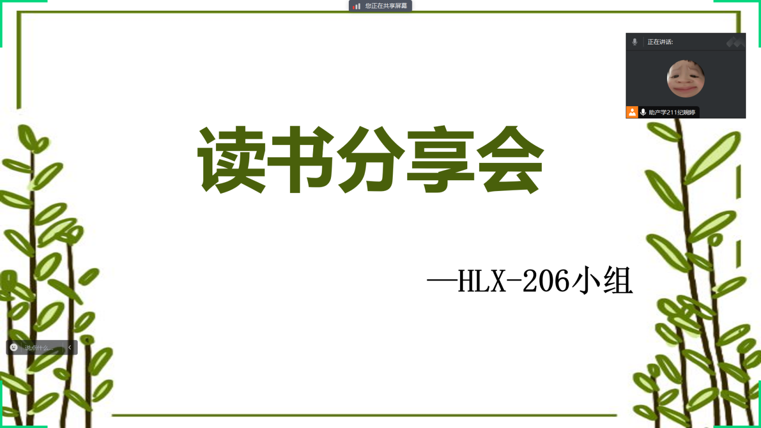 自开展社会实践学期以来,为了陶冶情操,开拓思维,提升我们的分析能力,HLX-206组全体人员于2024年1月30日开展了线上读书分享会。