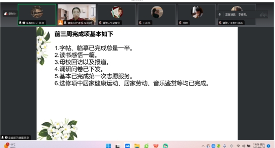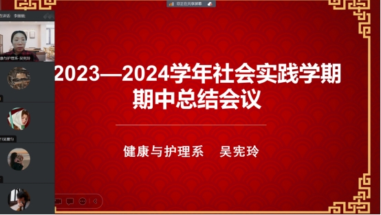 在2024年1月27日,吴宪玲老师组织了一次社会实践学期的期中总结会议。此次会议旨在全面总结同学们在社会实践活动中的表现,以期提升大家的实践能力和经验。吴宪玲老师组全体学生参会。