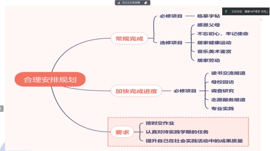 会议伊始,辅助学长王苗苗就对三个年级的同学在社会实践活动中的任务完成情况进行了详细的总结。她表扬了在学习中表现优异的同学,并展示了他们的优秀成果。随后,他指出了各年级同学普遍存在的问题,希望大家能够深入反思,不断提升自我。