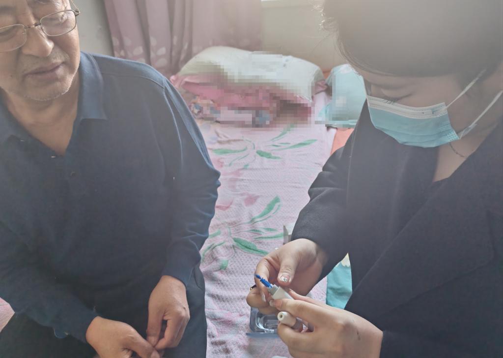 HLX-013组的杨冬雪同学于2024年1月25日至2月28日在社区进行了志愿者活动,向老人普及测量血糖的方法,普及相关知识并进行健康指导。