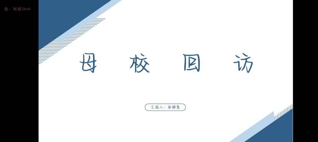 2024年1月26日,张静慧同学为响应齐齐哈尔工程学院的号召,表达对母校教育之恩的感谢和情系母校的深厚感情;与学弟学妹们分享交流,提供一些经验;介绍大学的校园生活,以此来激励同学们努力学习,为今后的大学之路选择提供经验。但由于时间紧凑,只能采取在腾讯会议上与母校进行交流。