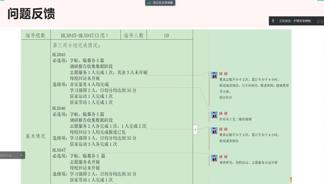 李婷婷老师对各组项目中存在的问题分别进行了指导,并强调社会实践学期的重要性,希望同学们能够重视。
