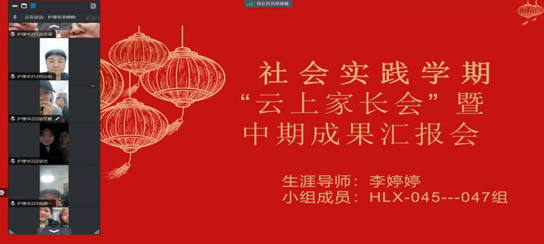 李婷婷老师于2024年1月27日通过腾讯会议召开“云上家长会暨中期成果汇报会”,HLX-045---047组共3组同学10人及其家长参会。