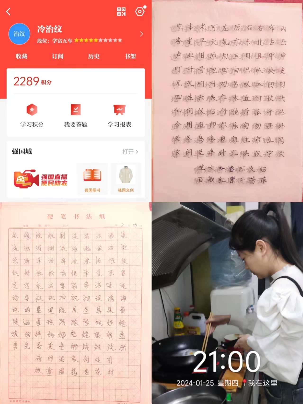 另外我们组同学还进行了学习强国的学习,通过学习强国,了解到了国家的最新政策和发展动态,拓展了视野,平台上有丰富的学习资源,让我们能够随时随地学习各种知识,不断提升自己的综合素质。