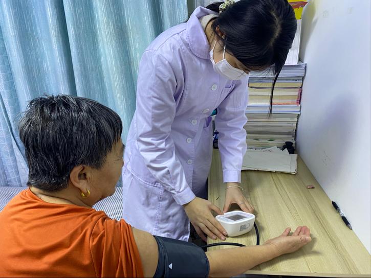 在诊所的日子里,张杰舒同学耐心地询问每一位病人的情况,倾听他们的需求,为他们提供健康指导。她帮助打扫卫生,垃圾分类,为患者输液,她的身影穿梭在诊所的每个角落,忙碌而有序。她还耐心细致地指导一位邻居奶奶进行血压测量,还用自己的专业知识给奶奶提供了许多保健建议。她的举动和热情,让奶奶感到无比温暖。在这个过程中,张杰舒不仅仅是一个志愿服务者,更是一个传播者。她的行动,传递着关爱和温暖,让更多的人感受到了护理学专业的价值和意义。她用实际行动证明了护理学专业,不仅仅是一份工作,更是一种责任和使命。